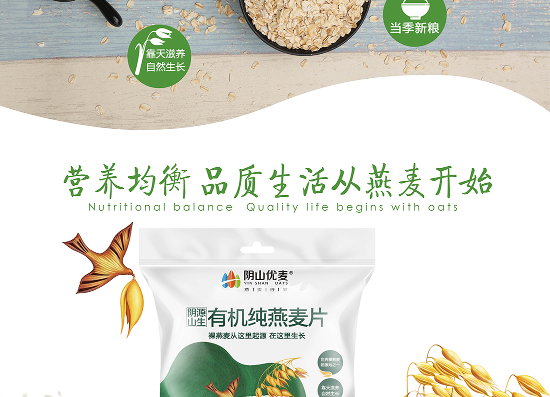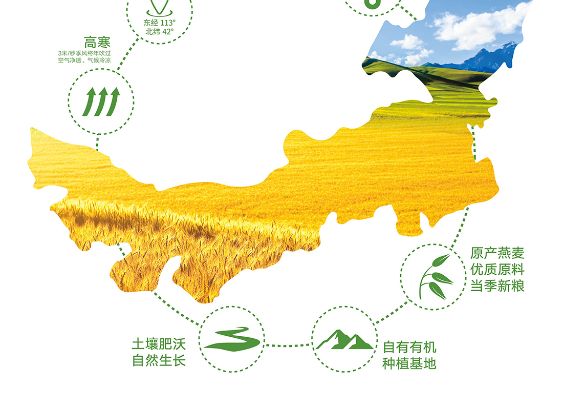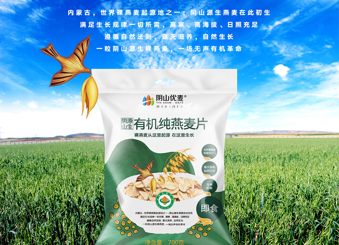 內(nèi)蒙古,世界裸燕麥起源地之一;陰山源生燕麥在此初生滿足生長(zhǎng)規(guī)律一切所需,高寒、高海拔、日照充足;遵循自然法則,靠天滋養(yǎng),自然生長(zhǎng);一粒陰山源生裸燕麥,一場(chǎng)無(wú)聲有機(jī)革命