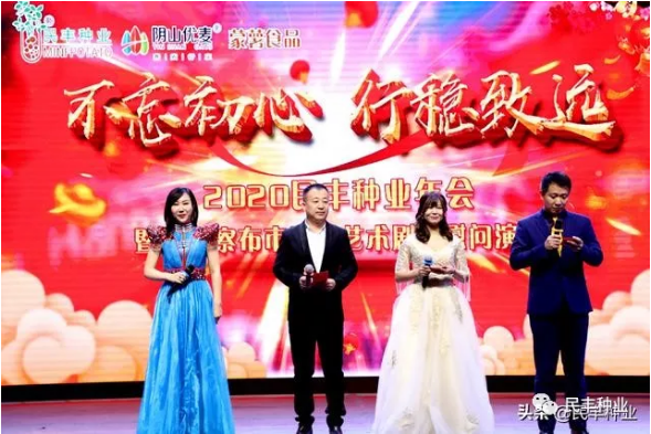 【摘要】2020年1月15日,民豐種業(yè)召開2019年終總結(jié)會、年度獎金現(xiàn)場發(fā)放會,并舉行2020年會暨烏蘭察布市民族藝術(shù)劇院慰問演出活動,總部及子公司350余人參加。董事長盧文兵對公司2019年工作及存在問題進行了總結(jié),并對2020年及未來發(fā)展作了明確規(guī)劃,同時為各農(nóng)場發(fā)放了現(xiàn)金獎勵。十幾載耕耘,不負韶華,民豐人默默蓄勢,只為明日薄發(fā)!