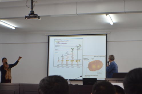 培訓會上,Harrie先生對馬鈴薯規(guī)范化種植管理的重要意義進行了深刻闡述,并就馬鈴薯各生長周期內易發(fā)、頻發(fā)的病蟲害及其防治措施與馬鈴薯種植、生產全程現(xiàn)代化管理等內容進行了講解,理論聯(lián)系實際,內容詳實全面,得到了參訓學員的廣泛認可。培訓全程為英語授課,為了使參訓學員能夠真正聽得懂、學得會,公司特聘內蒙古農業(yè)大學農學專業(yè)教授進行了全程翻譯。